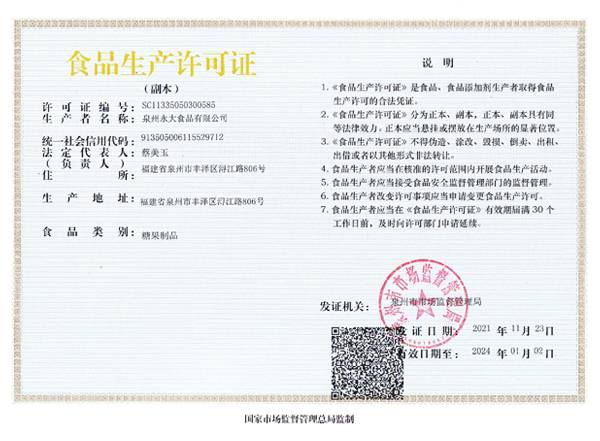 2021年永大食品生產(chǎn)許可證